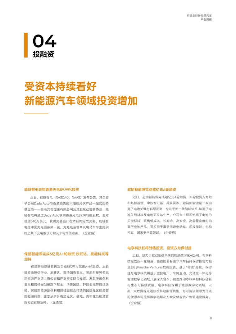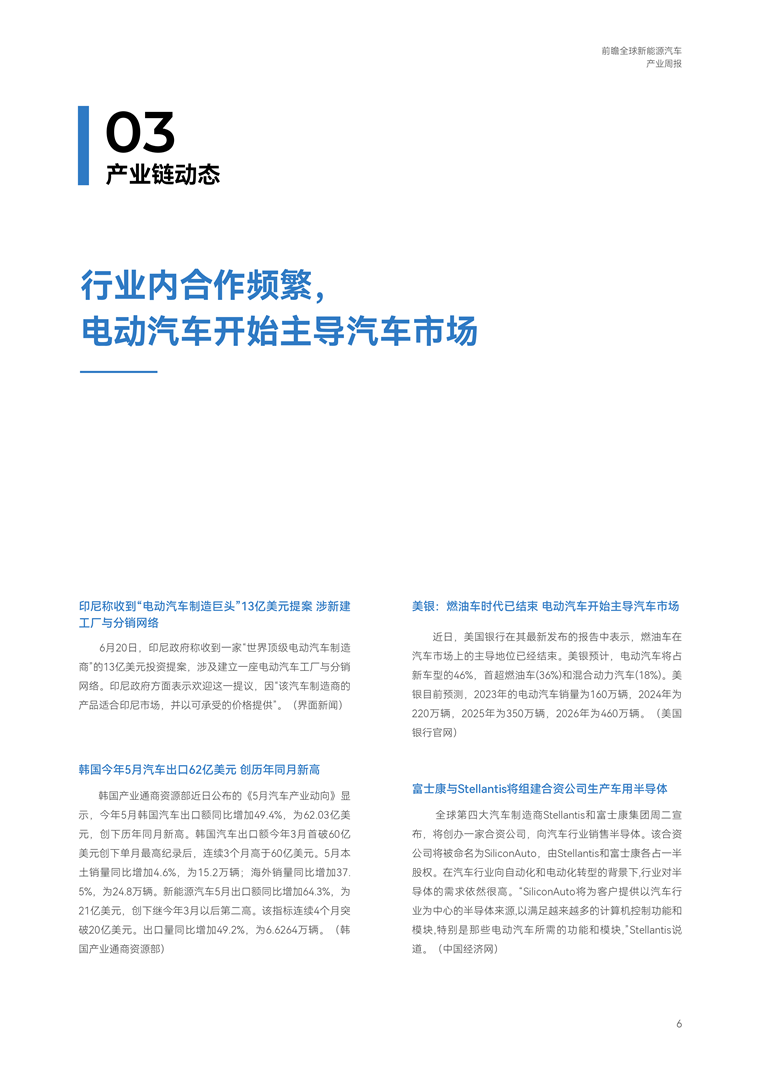 前瞻通过对全球产业链发展的动态进行紧密追踪,为用户每周精选全球产业核心资讯,形成《前瞻产业趋势周报》——新能源汽车篇,希望助力用户抓准产业发展新趋势。
