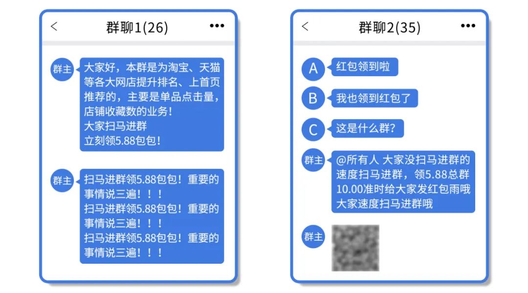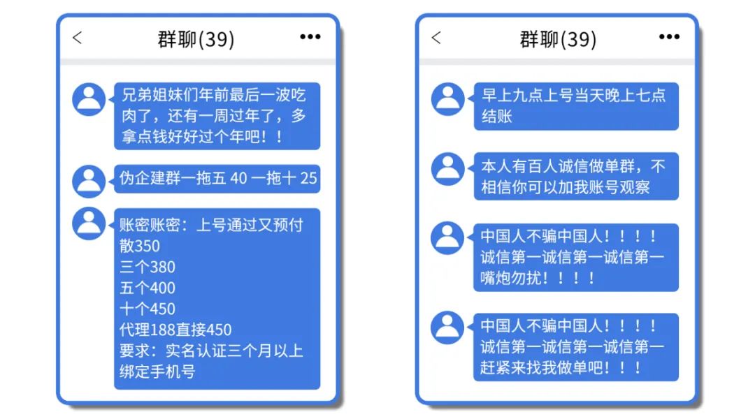 ,为留住群里优质“韭菜”,伪企群还会不断裂变,受害人亲友也易被拉入其中。